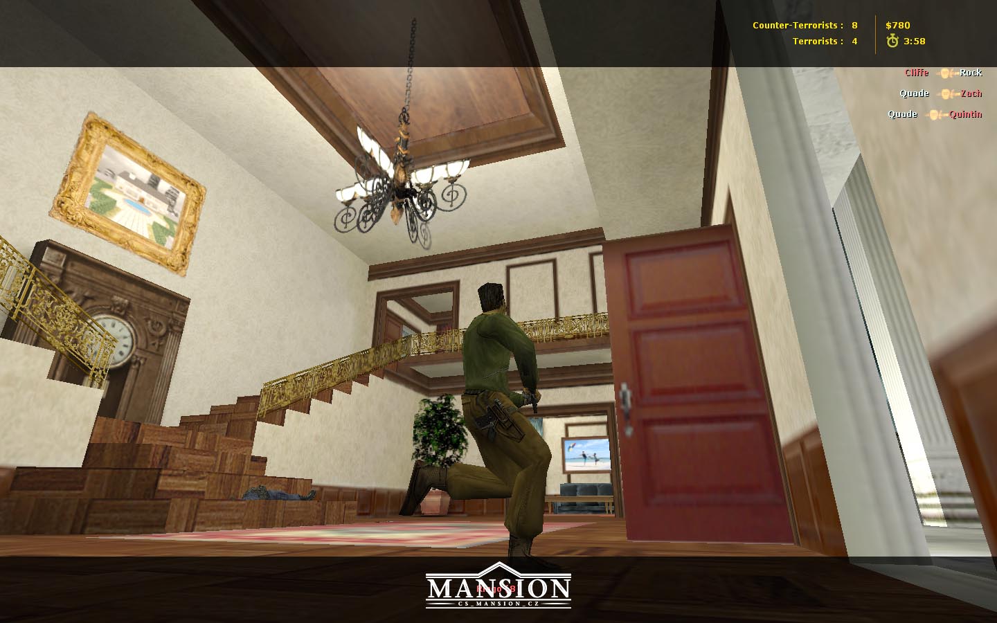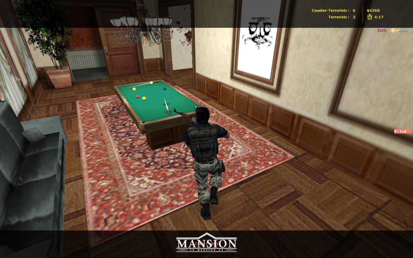I would like to recommend you to rename the final version of Cs_mansion_cz to something more recognizable. Something like this: Luxury_mansion or VIP_Mansion. Or something more original. I think it will be quite suitable for your map. Noted! Although I've struggled with the name. I tried thinking of an original but I keep going back to the idea that this was inted to be a modern remake of the classic cs_mansion rather than being a "spinoff" or alternate version. Kinda like a "cs_mansion 2.0." |